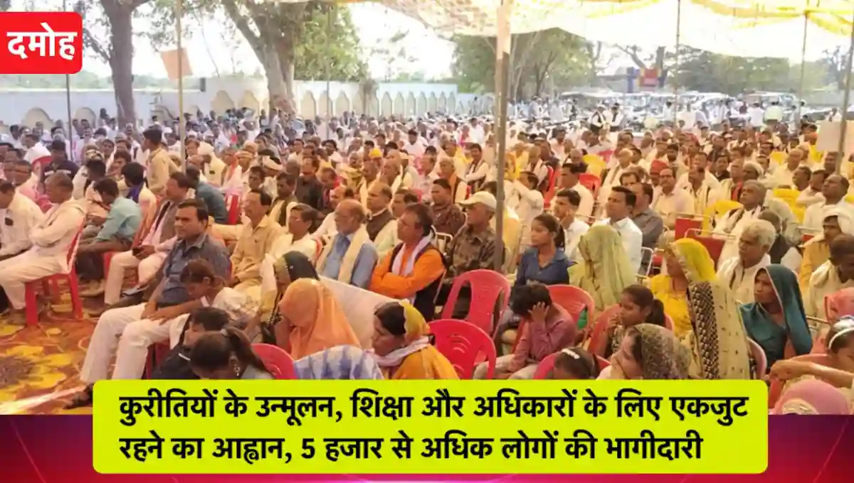 दमोह में अहिरवार सूर्यवंशी-जाटव समाज का जिला स्तरीय सम्मेलन, कुरीतियों के उन्मूलन, शिक्षा और अधिकारों के लिए एकजुट रहने का आह्वान, 5 हजार से अधिक लोगों की भागीदारी